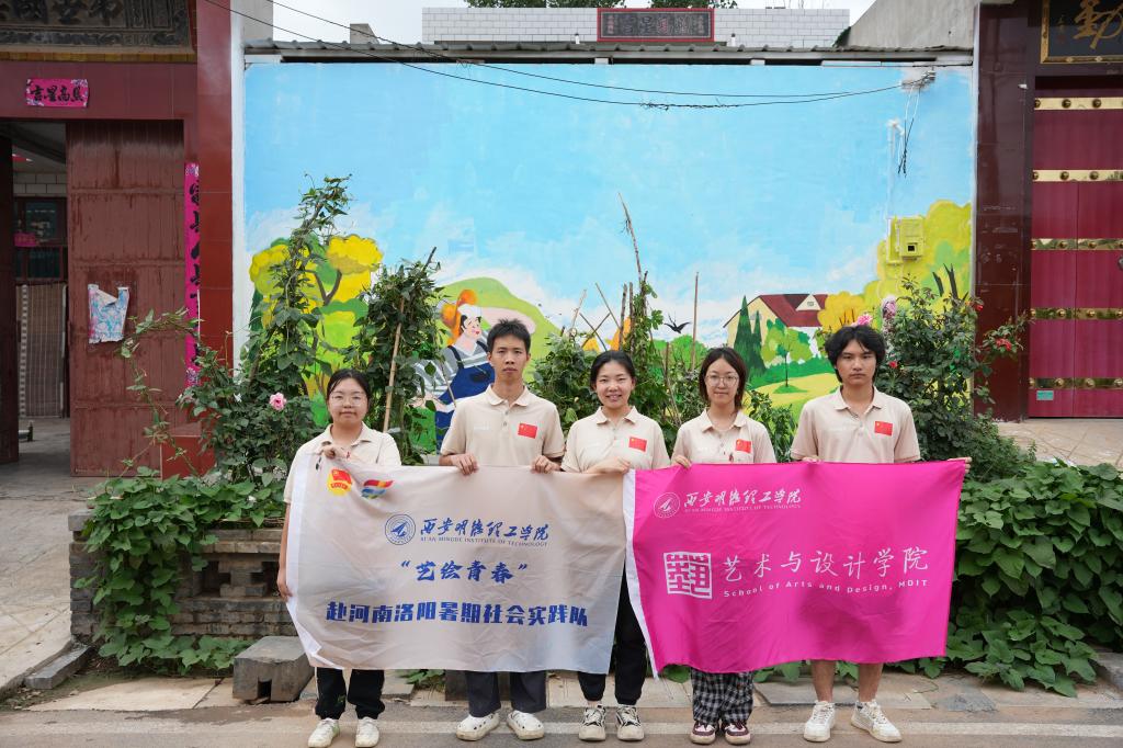 “艺绘青春·助力新村”暑期社会实践墙绘队为洛阳偃师夹沟村村口墙面进行绘画工作,覆盖墙面约36平米。宽阔干净的道路两旁,色彩各样的墙绘格外引人注目。路过的村民纷纷驻足,有的还拿起手机拍照。