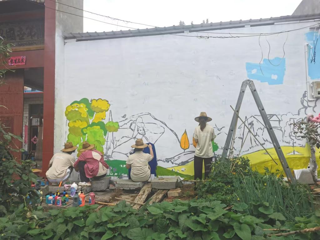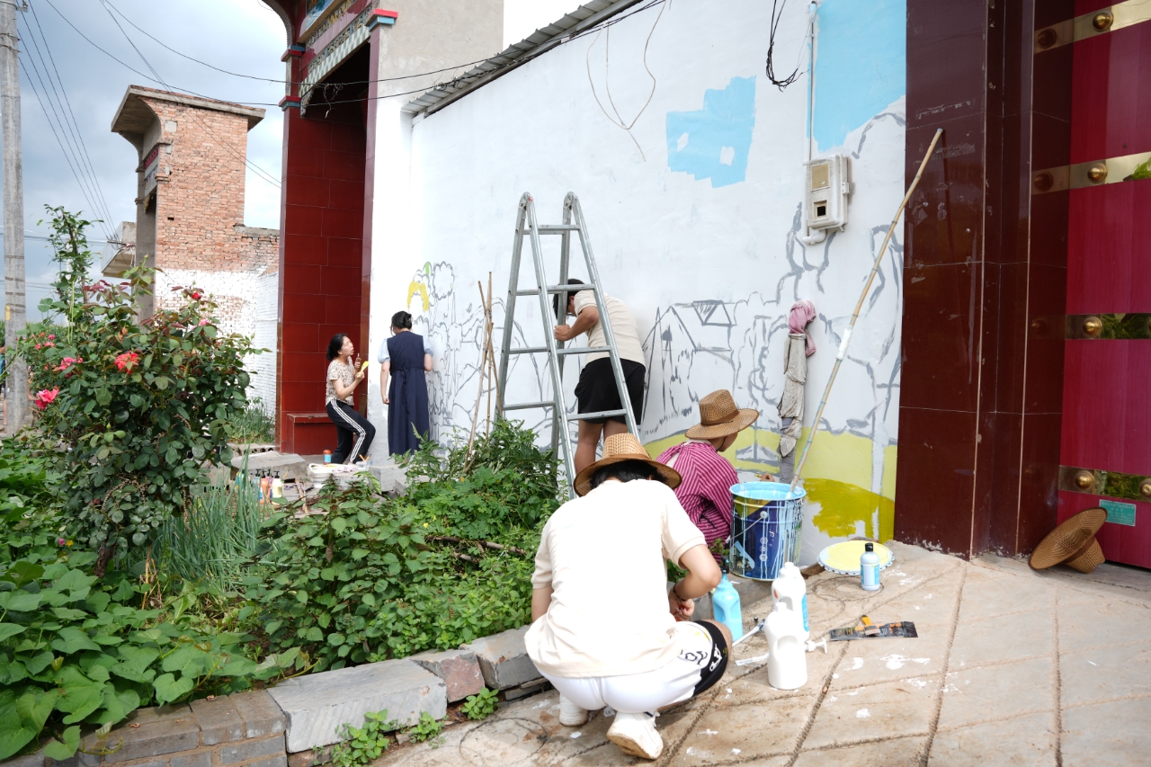 “艺绘青春·助力新村”暑期社会实践墙绘队深入洛阳偃师夹沟村开展“建设美丽乡村”的墙绘工作。在深入了解村子的历史文化、乡土人情后,同学们根据“建设美丽乡村”的主题为村口的墙面定下拟画的初稿。