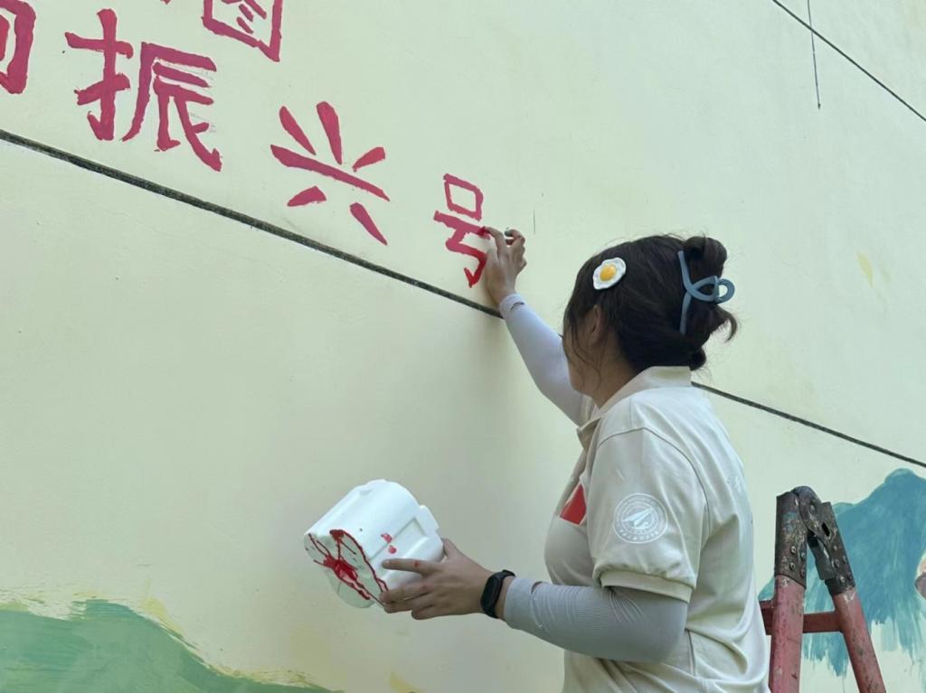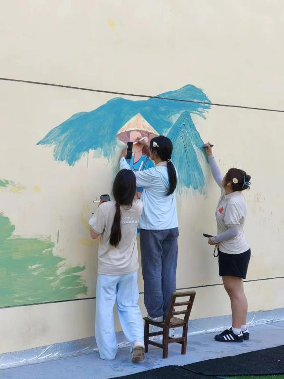 在创作过程中,实践队队员们还机缘巧合的接收到了村民的求助,倾听了村民的故事尽自己所能为不能说话的村民奶奶提供了帮助,这场活动不仅为村庄带来了一场视觉与心灵的温暖,还搭建起了一个情感与思想交流的平台。每一次笔触的落点,不仅是色彩与线条的交融,更是城乡心与心的贴近与融合。这也是队员们参加三下乡活动的意义所在。