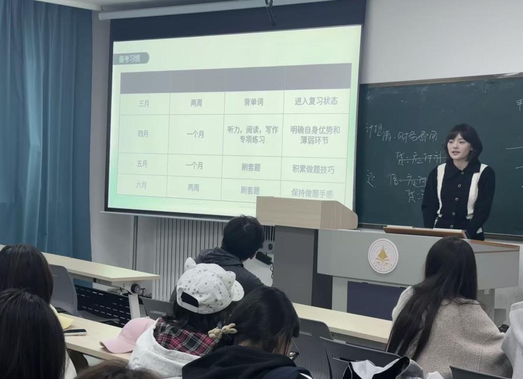 活动伊始,讲师简要介绍了本次分享会的举办背景与目的,指出大学英语四六级证书是大学生学业成长中的重要凭证,也是提升个人综合竞争力的关键要素。学院依托“一院一品”学业帮扶项目,搭建朋辈经验交流平台,旨在通过优秀学子的经验分享,帮助同学们理清备考思路、掌握高效学习方法,破解四六级备考困境,助力大家顺利通过考试。