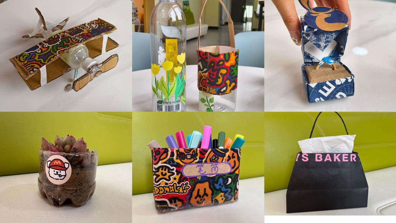 活动现场,同学们将奶茶袋、饮料瓶、纸箱、一次性水杯等日常废弃物品转化为艺术创作的素材,通过剪裁、拼贴、绘画等手法,赋予旧物全新生命。
