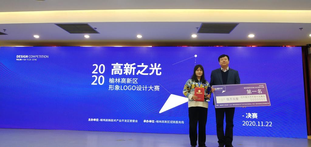 2020年11月22日,由榆林高新技术产业开发区管委会主办的2020高新之光—榆林高新区形象LOGO设计大赛在榆林市落下帷幕。经过紧张激烈的现场答辩和专家组的专业评审,艺术与设计学院的4位学生在本次大赛中取得了优异的成绩,产品设计专业李思楠获得大赛一等奖并获五万元奖金,朱金鑫、王博萱、李炎锦获得入围奖并分别获三千元奖金。