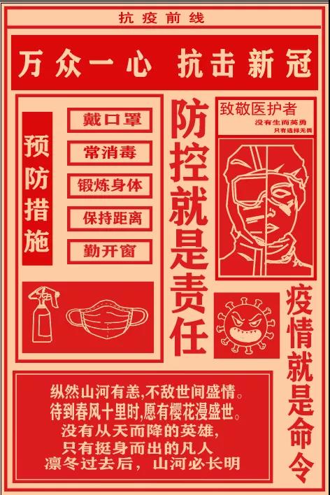 艺术与设计学院的学子时刻关心着疫情进展,心系着那些在一线的防疫人员的安危。用作品来传播健康防疫的正能量,用行动来减轻防疫人员的压力。