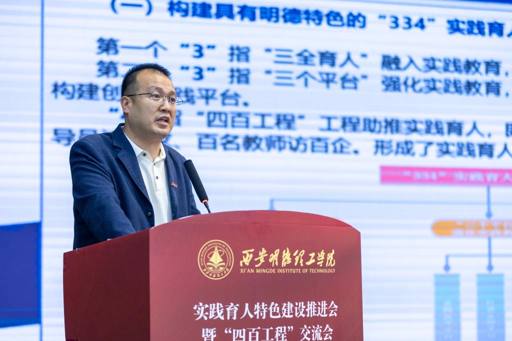 为推进学校实践育人特色建设,不断增强实践育人工作的自觉性、针对性和实效性,彰显实践育人办学特色,10月11日下午,学校实践育人特色建设推进会暨“四百工程”交流会在建德楼203报告厅召开。会议以“聚焦应用型人才培养和高质量发展,扎实推进实践育人体系建设和特色培育”为主题。全体校领导、职能部门和教辅单位负责人、二级学院领导班子成员、专业负责人、教研室主任、教师代表、学生代表等300余名师生参加了会议。会议由副校长朱延波主持。