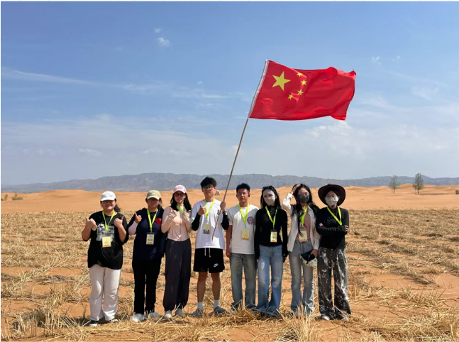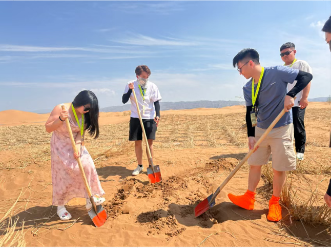 沙坡头治沙实践(7月27日):青年们俯身扎下麦草方格,汗水浸透腾格里沙漠边缘。亲手固沙的体验,让“守护国土”从口号变为青年肩头的责任。