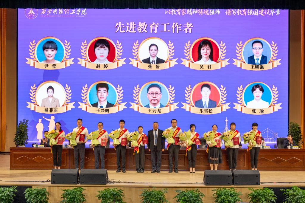 9月10日上午,学校在四季廊桥报告厅召开庆祝第41个教师节表彰大会暨新学期工作部署会。陕西金叶科教集团董事局主席、总裁,明德源教育集团董事长、总裁,学校董事长袁汉源,学校副董事长兼执行董事张琳,校长王志刚,党委书记马川鑫,明德源教育集团总裁助理、副校长朱延波,党委副书记、副校长刘星,副校长陈鹏,财务总监田雪,董事会秘书、校长助理马杨利,校长助理刘佳出席大会。受表彰的先进单位代表、先进个人及全体教职工1100余人参加表彰大会。大会由党委书记马川鑫主持。