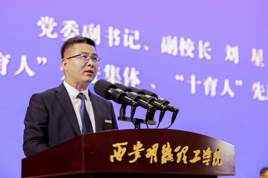 在第41个教师节来临之际,他代表学校领导班子,向全校教职员工以及受表彰的集体和个人表示亲切问候、衷心祝贺和崇高敬意!王校长对学校上半年及暑期工作成效做了简要回顾,提出了新学期工作的指导思想和主要思路。他强调,下半年工作要以“五个着力”作为重点工作任务:一是着力提升党建和思政工作水平,引领推动学校高质量发展;二是着力评建整改和评估达标建设,坚决打赢评建攻坚战;三是着力强化学生思政教育工作和就业工作,构建高质量学生思政教育与管理服务工作体系;四是着力转变教育思想观念,扎实做好“十五五”规划研制工作;五是着力抓好校园安全稳定工作,夯实学校高质量发展根基。王校长结合教学评建工作,提出了聚焦评建整改工作,聚焦数据核查工作,聚焦重点工作,聚焦特色建设和亮点打造,聚焦评建氛围营造等“五个聚焦”的主要任务。并就如何做好新学期工作,高质量完成评建目标任务,强调了四点要求:一是要强化责任担当抓落实;二是要把握内涵要求抓落实;三是要形成工作合力抓落实;四是要强化统筹推进抓落实。希望全校教职工继续保持旺盛工作热情和饱满工作干劲,以更高标准、更优质量和更大成效,坚决打赢教学评建攻坚战,为明年顺利通过教育部评估奠定坚实基础。