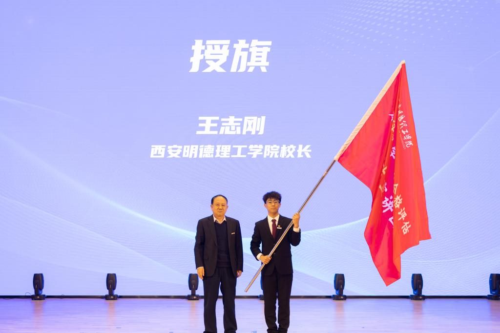 校长王志刚教授为校级学生宣讲团授旗,党委书记马川鑫教授为各院级宣讲团代表颁发聘书,标志着世界杯官网本科教学工作合格评估学生宣讲工作全面启动。