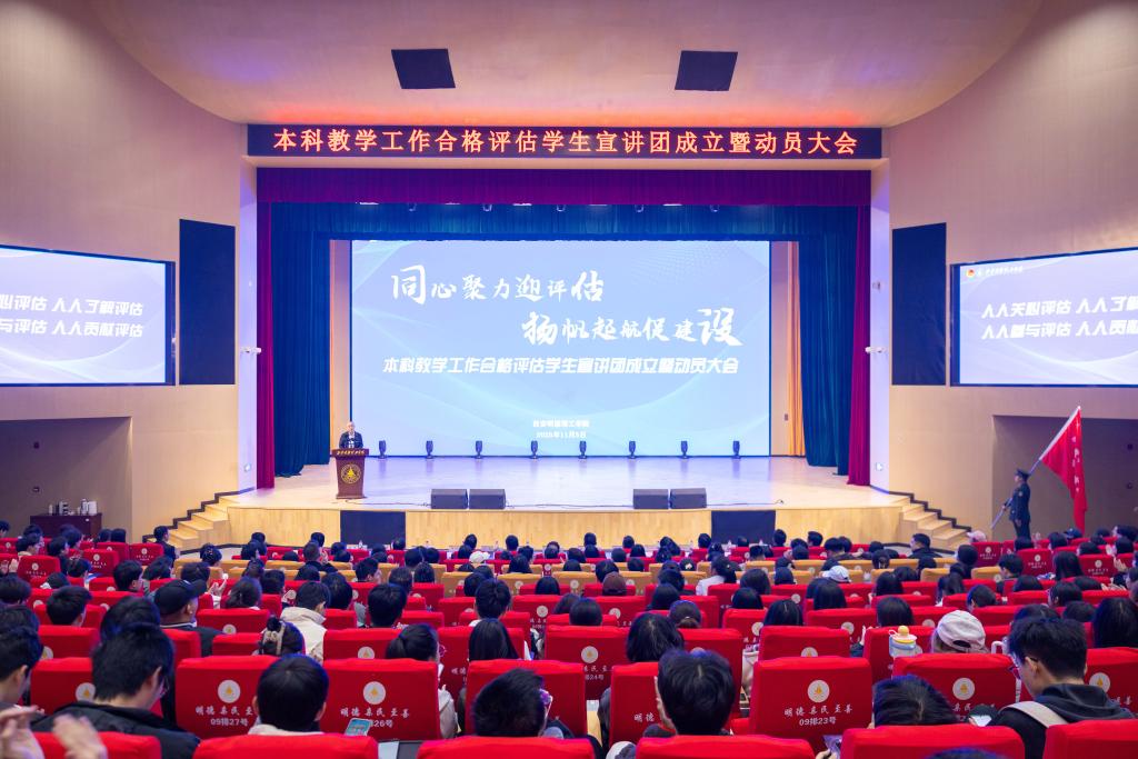 11月5日,学校在四季廊桥报告厅隆重举行本科教学工作合格评估学生宣讲团成立暨动员大会。大会以“同心聚力迎评估,扬帆起航促建设”为主题,旨在凝聚学生力量,夯实评建责任,为学校高质量通过本科教学工作合格评估注入青春动能。