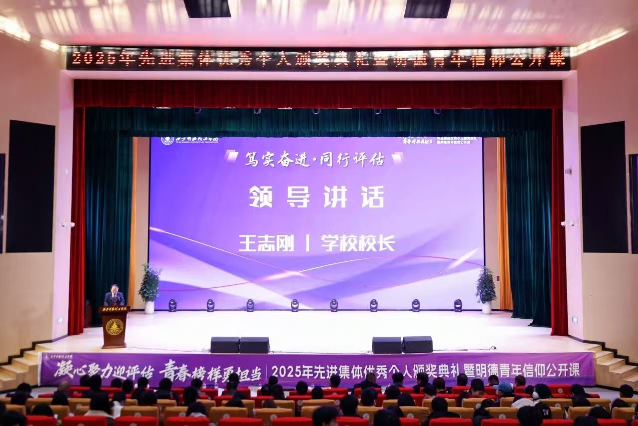 学校校长王志刚作题为《凝心聚力促评建 青春榜样勇担当》的讲话