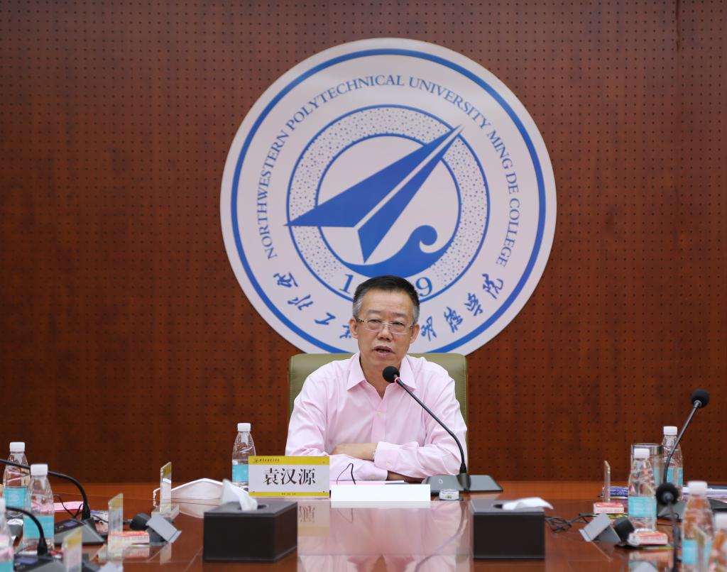 集团公司董事局主席、总裁袁汉源致辞讲话,他对学院为成功完成转设工作所付出的努力以及取得的成绩表示了肯定,并对学院下一步工作作出重要指示,并提出了明确工作要求。他强调,学院转设成功代表着国家教育主管部门对学院建设发展、办学成果、社会贡献的肯定,更标志着学院将由此迈向新的征程。希望学院以成功转设为契机,始终坚持创新发展,全面深化教育教学改革,不断加强内涵建设,着力提升办学质量和办学实力,努力将明德理工学院打造成为集团教育产业的“旗舰店”,全力以赴为将学院建设成为特色鲜明,有责任、有担当、有情怀的高水平应用型本科大学而不懈努力。