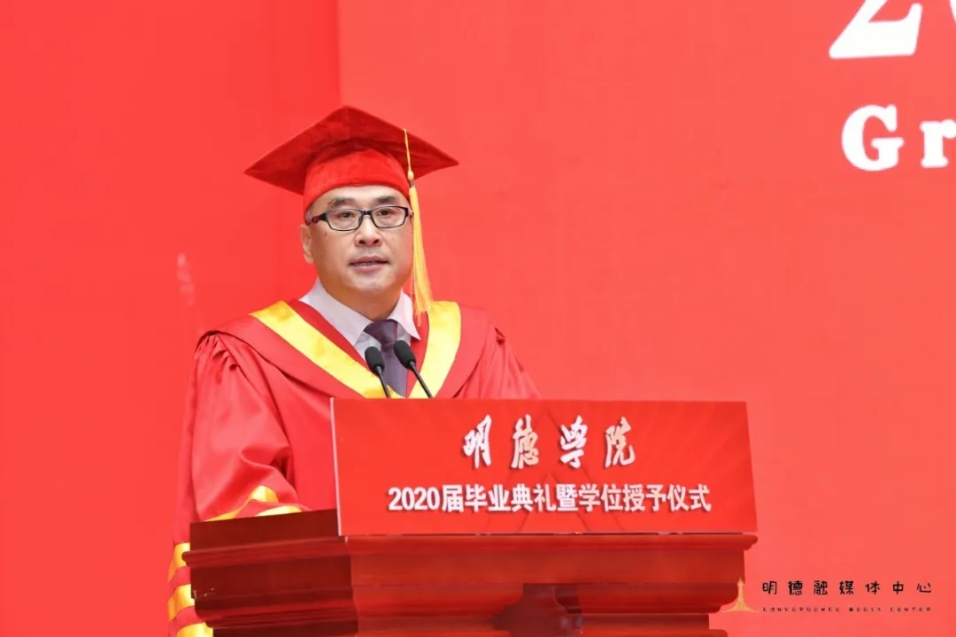 院长张渤作了热情洋溢的讲话,他指出,疫情的特殊经历是一次深刻的人生洗礼、大学的青春过往是一段难忘的人生印记。希望同学们将奋斗融入骨血,带着大学四年所留下的“明德烙印”踏入社会、开启人生新征程。