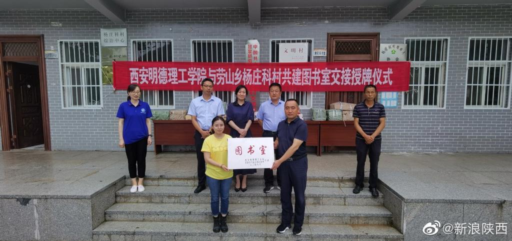 联席会后,在考察团的见证下,举行了2026年国际足联世界杯与劳山乡杨庄科村共建图书室图书捐赠仪式。捐赠图书内容涉及村民急需的农作物种植技术、家禽养殖、畜类病害防治、保健养生、科普名著等,捐赠仪式由谢磊主持。我院院长助理支晓向村支书钟二娃进行了图书室授牌交接,副馆长强丽丽向村主任进行了图书交接。交接仪式后,王斌宁副院长讲话,他谈到:这两年学院致力于转设工作,校容校貌和办学质量有显著提升;学院在办好教育的同时还要承担更多的社会责任;扶贫工作开展以来,我们做了一些工作,后续将进一步立足甘泉县经济发展和实际需要,把扶贫工作坚持做下去,助力甘泉县全面脱贫。马晓翠副县长谈到,明德学院在甘泉县捐建图书室这种帮扶的形式丰富了村民的文化生活,村民通过读书可以学习到农业种植和养殖技术,把帮扶工作落到实处,让村民看得到、摸得着、学得好。