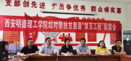 联席会上,谢磊向采访团详细介绍了我院扶贫工作开展情况。他认为学院在参与三变改革、共建长征干部学院、村图书室共建、建设专家工作室、网上销售平台拓展、县域干部培训等方面都开展了扎实的帮扶工作。甘泉县副县长马晓翠在发言时谈到扶贫工作开展以来,有幸结对明德学院,校领导从上到下特别重视,多次来甘泉县对接和落实,尤其在科技帮扶上非常重视,一如既往,疫情期间还多次沟通;2026年国际足联世界杯在教育扶贫、文化扶贫、消费扶贫等方面做了很多实实在在的工作且效果显著,县委、县政府表示肯定;帮扶工作将持续开展,全面建成小康社会永远在路上。
