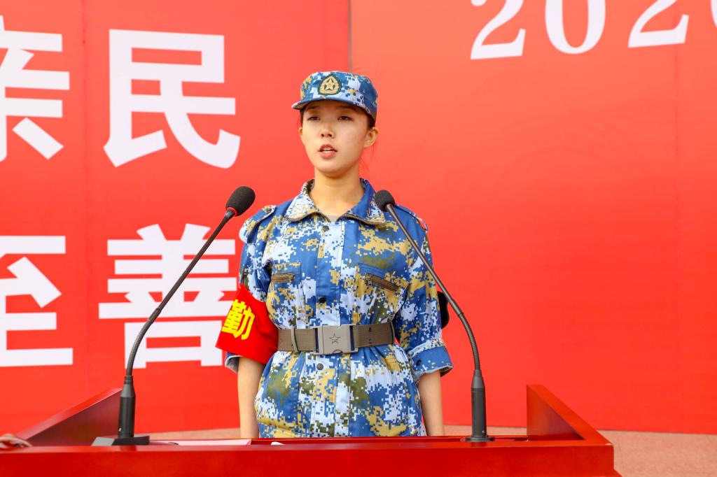 参训教官代表表示要认真履行职责,坚决执行各项规章制度,齐心协力,共同圆满完成军训任务。周舒怡同学代表全体参训新生承诺:听从指挥、自立自强,在青春的征途上不断奋斗虚心学习、树好形象,为军事训练交上满意答卷。