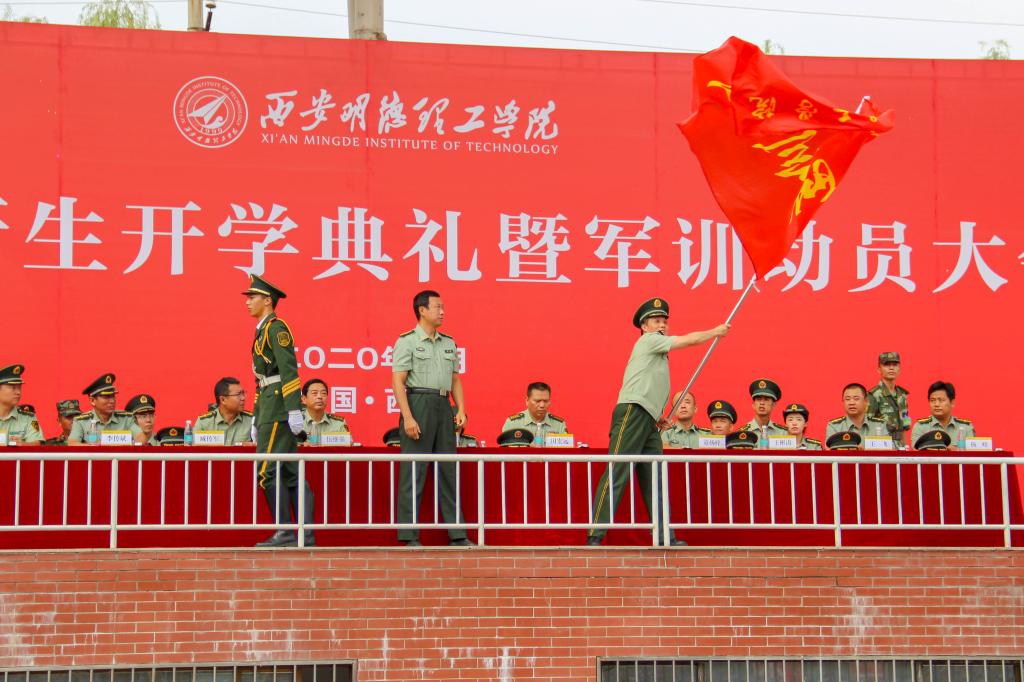 学院党委副书记、军训团第一政委董昊同志为军训团授团旗,鲜红的军训团团旗迎风招展,正如全体参训师生昂扬的精神面貌。
