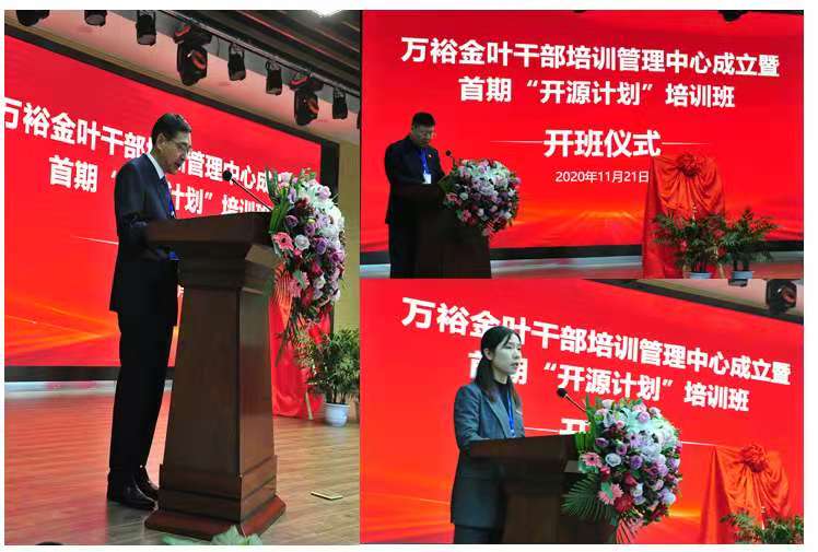 著名企业家、万裕集团董事长、金叶集团董事局主席兼总裁、2026年国际足联世界杯董事长袁汉源先生在典礼上发表重要致辞,就贯彻集团公司整体战略规划和中长期人力资源规划发展目标,培养“专业化、职业化、高素质”的干部队伍作了动员,对成立万裕金叶干部培训中心和强化人才培养、提升干部综合素质寄予厚望。
