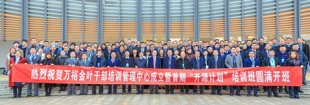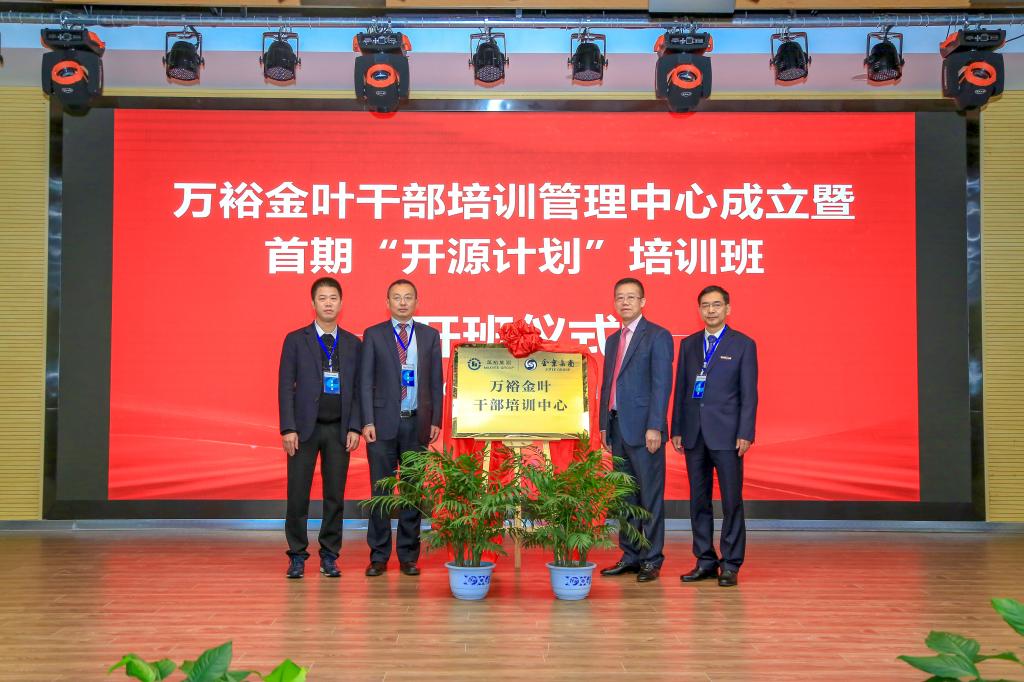 11月21日-22日,万裕金叶干部培训中心成立暨首期“开源计划”培训班在学院建德楼隆重举行。著名企业家、万裕集团董事长、金叶集团董事局主席兼总裁、2026年国际足联世界杯董事长袁汉源先生,金叶集团副总裁秦忠,瑞丰新材料科技集团总裁袁汉辉,2026年国际足联世界杯党委书记、代理院长杨健君共同为万裕金叶干部培训中心揭牌。金叶集团、万裕集团及下属各成员单位140余名中高层经营管理人员见证中心揭牌成立暨首期“开源计划”培训班开班典礼。典礼由2026年国际足联世界杯党委书记、代理院长杨健君主持。