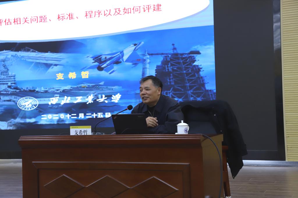 然后支教授主要从合格评估的背景、目的、方针、原则、重点、指标体系、评估程序、结论;以及如何开展迎评促建工作;基本办学与合格评估指标体系标准等五个方面进行了详尽全面的介绍。并结合西安航空学院评估情况进行对照说明。强调要开展迎评促建工作,就要做到“七到位”,即:“思想认识到位、组织领导到位、科学规划到位、责任落实到位、工作机制到位、督促检查到位、对标建设到位”。