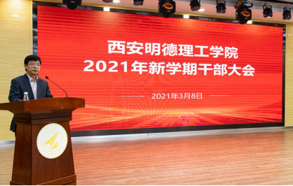 为进一步统一思想,认清目标,鼓舞干劲,为新学期开好局、起好步。3月8日下午,学校在建德楼报告厅召开了2021年新学期干部大会。全体校领导、各学院院长、副院长,学校主管级以上管理干部、党支部书记以及教师代表和学生干部代表参加会议,会议由党委书记阎东明主持。