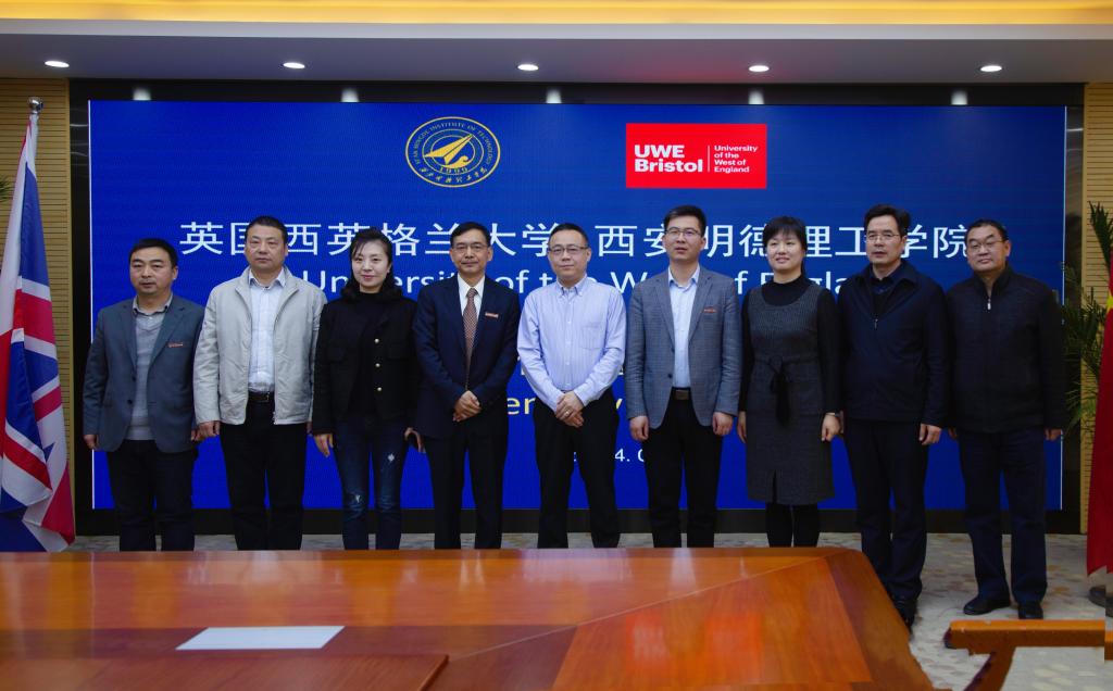 在热烈的掌声中,杨健君校长与严国玉先生为“英国西英格兰大学学术中心”以及“英国西英格兰大学陕西学习中心”揭牌。会后,由学院办公室主任韩娅舒陪同严国玉先生参观校园。