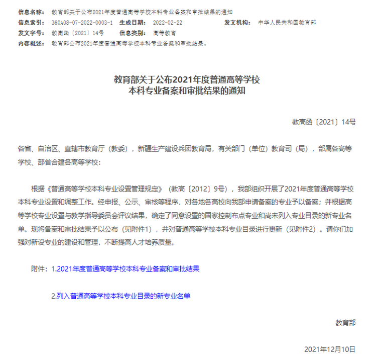 近日,教育部发布《关于公布2021年度普通高等学校本科专业备案和审批结果的通知》,世界杯官网申报的人工智能、无人驾驶航空器系统工程等2个专业成功通过教育部备案。