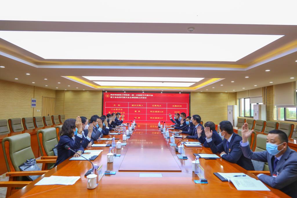 会上,校党委副书记董昊作了工会工作报告,党委委员、规划发展与协调处处长王鹏飞作了关于学校“十四五”教育事业发展规划的编制说明。大会审议通过了学校章程、学校工会章程、学校财务工作报告、教代会实施办法、二级单位教代会实施细则,选举产生了第一届工会委员会委员、工会经费审查会委员会委员、教代会三个专门委员会委员。