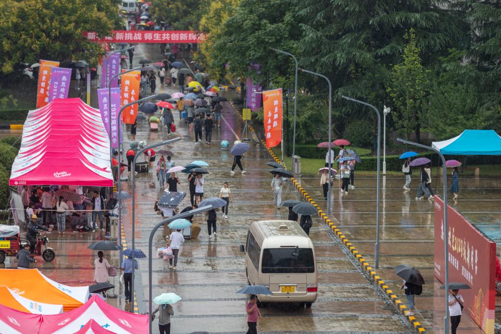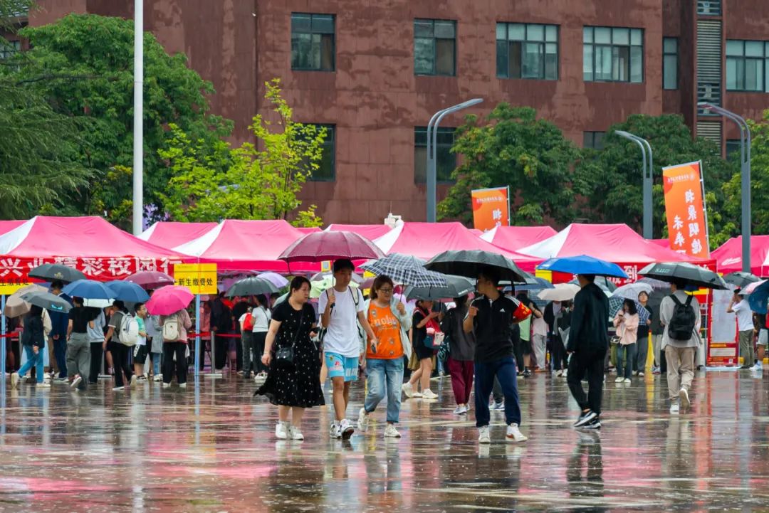 为预防阴雨天气,后勤管理处按照学校“周到、全面、细致、高效”的迎新工作要求,积极安排工作人员提前在校门口、中心广场搭建迎新接待设施,配置好防雨帐篷、桌椅等物品,供新生存放行李及家长亲友休息所用。