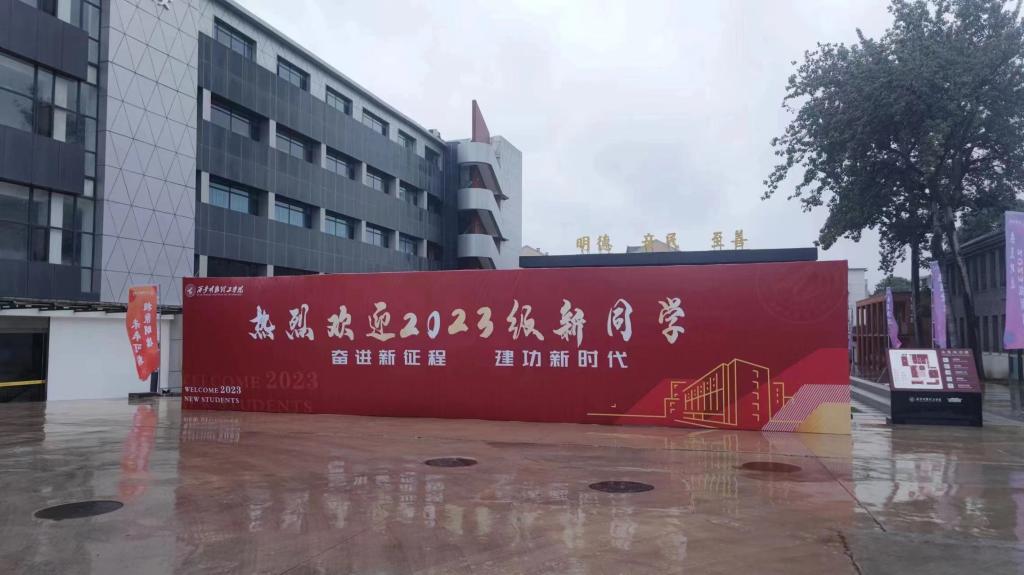 为了记录初次相遇的精彩瞬间,中心广场上特别设置了打卡拍照墙,供大家进行打卡体验。同时,把新生入学的第一天作为新生入学教育的第一课,学校围绕爱国教育、感恩教育、荣校教育、校情教育等主题布置了形式丰富、内涵深刻的迎新文化展示牌。