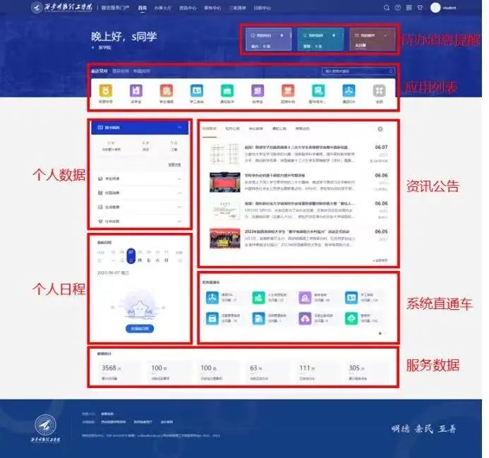 2023年是“教学评建攻坚年”,学校坚持“以评促建,以评促改,以评促管,评建结合,重在建设”的方针,撰写学校合格评估自评报告,制定时间表及路线图,邀请评估专家进校深入指导评建工作,召开教学评建工作推进会、专业建设推进会,校领导与各单位签订评建工作目标责任书,有效推动评建工作扎实开展。新增3个学士学位授权专业、获批本科专业3个、高职专业1个,立项2023年度陕西省教育教学改革研究一般项目2项、完成2023版本科生培养方案和教学大纲的修编工作,组织开展专业评估和一流专业评选工作,办学水平和办学质量显著提升。实施办学条件提升工程,智慧校园一期融合服务门户平台正式上线,校医院扩建、标准化“健康驿站”建成并规范运行,“一站式”学生社区,新功能区、四季廊桥、明奥运动馆等建设项目有序推进。