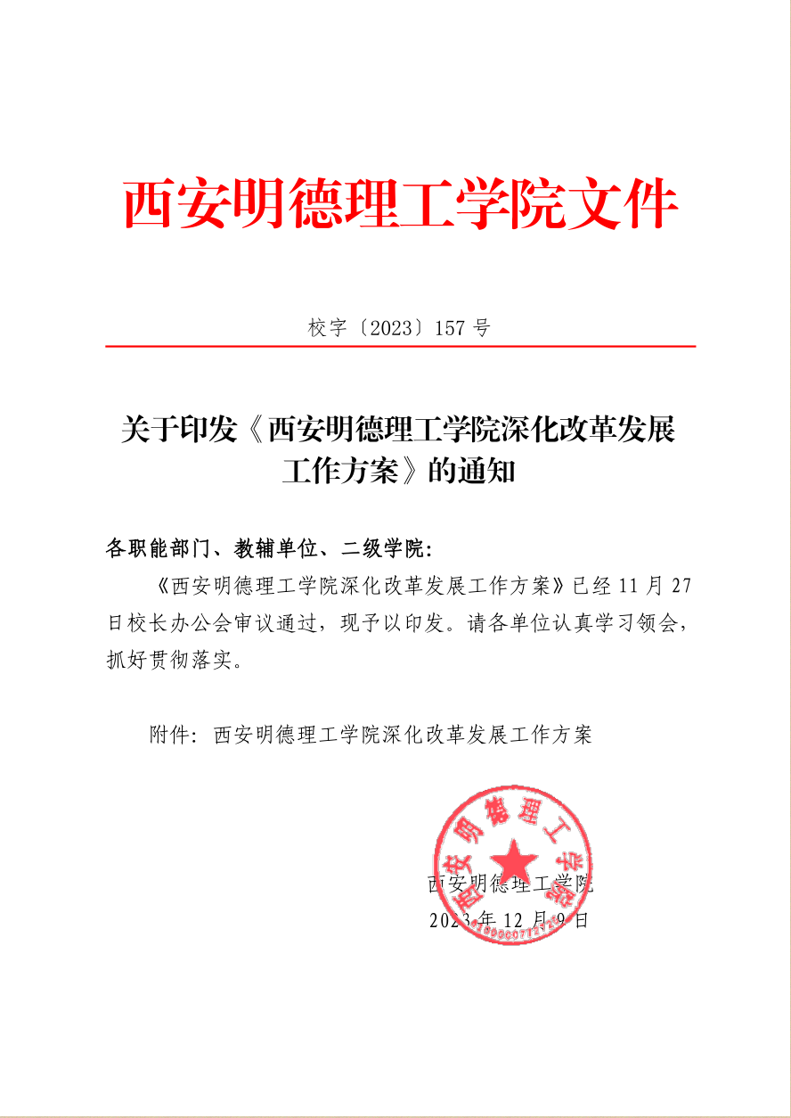 学校立足地方性、应用型、开放式的总体办学定位,聚焦本科教学合格评估和高质量转型发展,在人才培养模式、体制机制、师资队伍和管理队伍建设等方面深度推进改革。按照明德源教育集团改革发展要求,学校召开深化改革发展工作部署会,扎实推进工作落实。通过深化改革,不断规范学校管理,持续提升办学质量,全校上下转变思想观念、创新方式方法、提高工作效率、增强业务能力、务实工作作风、强化综合素质,不断推动学校高质量转型发展,加快建设高水平应用型大学步伐。