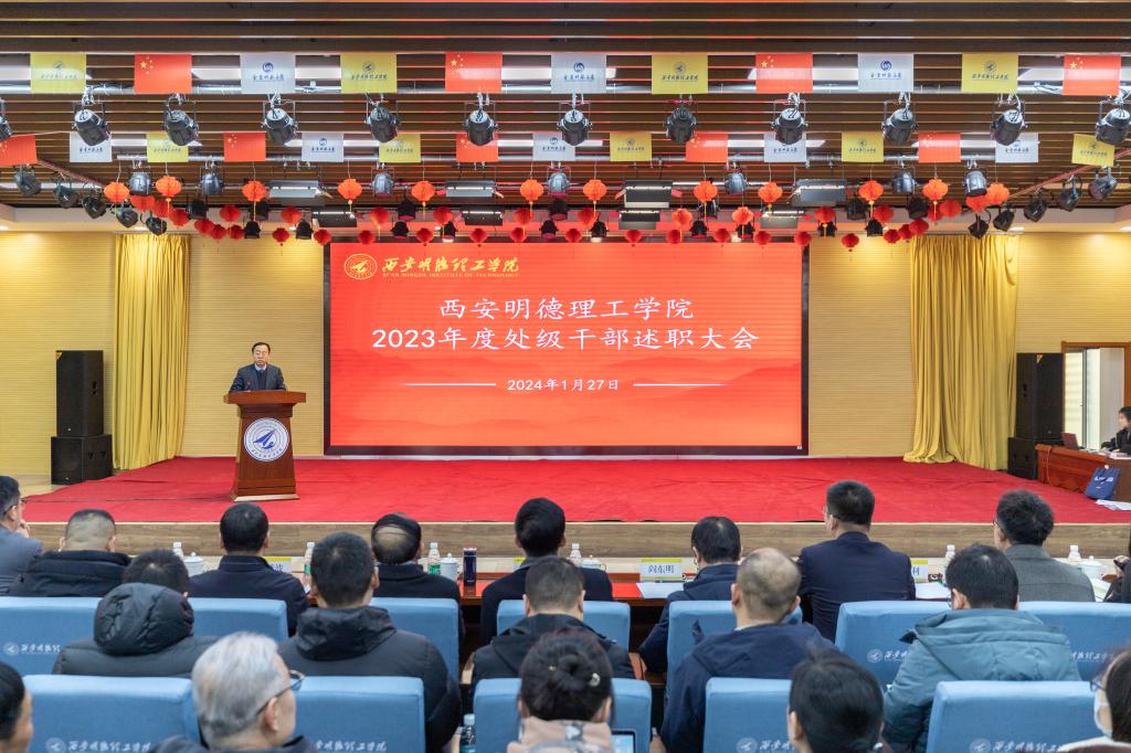 校长王志刚教授根据董事长的指示作重要讲话,他首先代表学校对全体处级干部的工作表示肯定和感谢。他表示,本次述职既是全面展示处级干部年度工作思路、举措、成效和特色成果的汇报会,也是各单位工作成果的分享会,还是总结成绩、查找问题、明确方向再出发的动员会。他强调,处级干部是是学校运行管理的中坚力量,学校高质量发展需要一支具有较高政治站位、胸怀国之大者的干部队伍,需要一支具有较强学习能力能够较好研究理解掌握高等教育规律和应用型大学建设、应用型人才培养规律、对评估指标内涵深刻理解的干部队伍,需要一支具有较强执行能力和创新能力的肯担当善作为求真务实的干部队伍,需要一支具有较强的协作配合能力的干部队伍。他要求,全体干部要履行为党育人、为国育才的初心使命,深入推进本科合格评估的评建准备和创建陕西省教育系统文明校园2024年重点工作,认真总结经验、增强战略思维,谋篇布局,敢于攻坚克难,打破壁垒,以强大的工作合力顺利完成2024年攻坚任务。