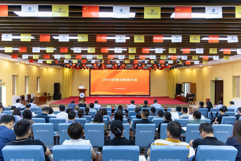 为进一步贯彻落实二十届中央纪委三次全会精神、十四届省纪委三次会议精神以及省委教育工委全面从严治党工作会议精神,推动党纪学习教育走深走实,推进全面从严治党向纵深发展,6月19日上午,学校召开了2024年警示教育大会。全体校领导、学校科级及以上领导干部、各专业(课程)负责人参加了会议,党委书记阎东明讲话并讲授廉洁党课,党委副书记、校长王志刚主持会议。