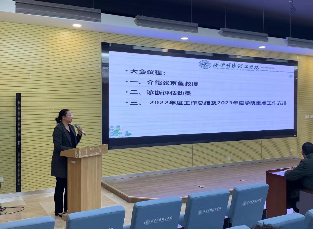 会上,副院长刘勇作诊断评估动员,就学院2022-2023学年第一学期教学工作进行了总结。她表示学院上学期在全体教师的共同努力下,顺利完成了各项教学工作,教学秩序整体稳定,教学效果良好。重点就本次诊断评估专家进校相关安排、考察内容、查阅教学资料、听课看课等方面的有关情况进行了说明。她要求大家在思想上高度重视这次的诊断评估工作,积极配合学校和学院的工作安排,要以良好的精神面貌,高度的责任感认真对待诊断评估工作。