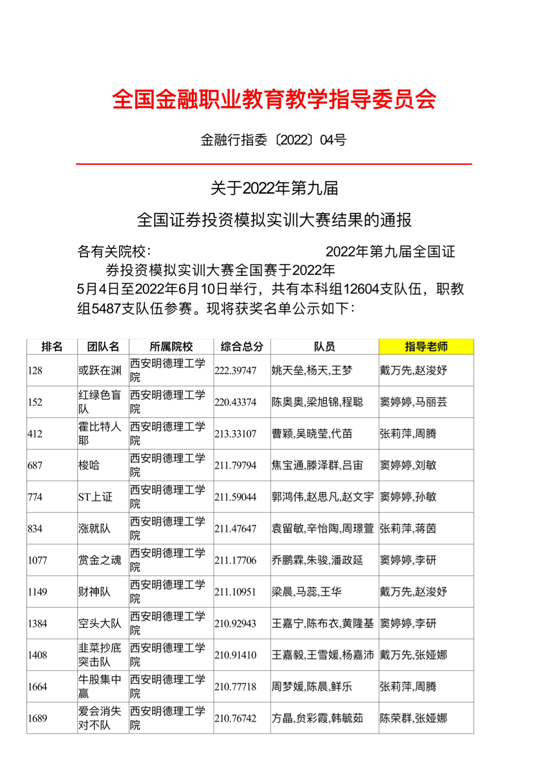 6月10日,“2022年第九届全国证券投资模拟实训大赛”落下帷幕。世界杯官网参赛队伍在师生的共同努力下,经过为期一个月的激烈角逐,从全国18000只队伍中脱颖而出,分别获得集体一等奖3项、二等奖15项、三等奖21项。共计奖项39项。