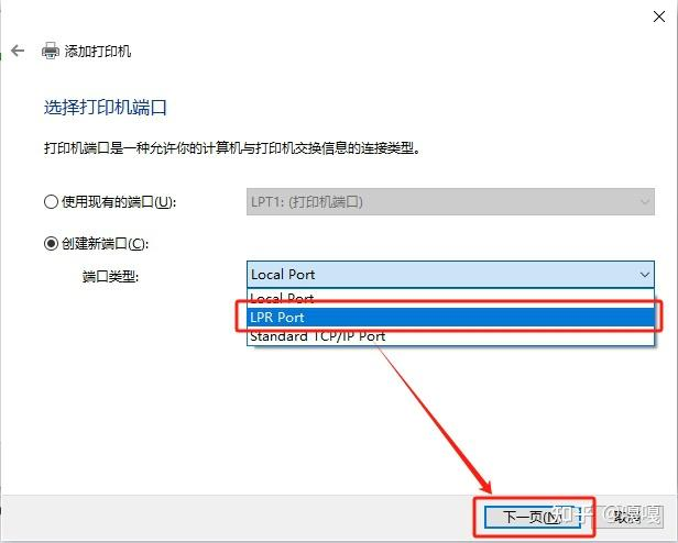 选择“创建新端口”,端口类型选择“LPR Port”: