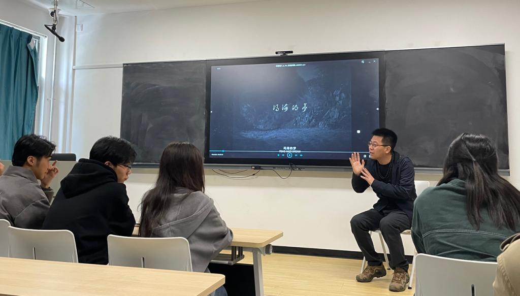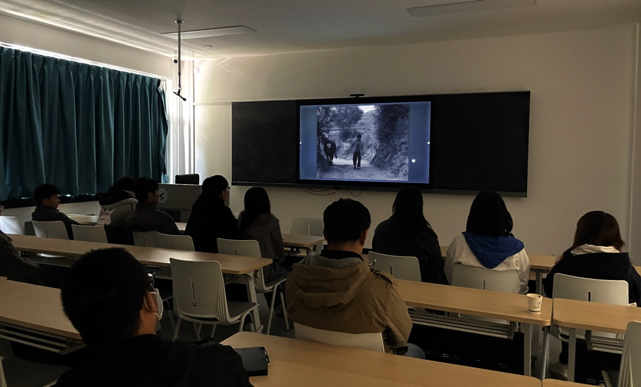 之后在北校区汉源楼301教室,郝杰导演放映了两部其新近创作的短片,并在放映结束后与师生进行了深入交流,从影片的拍摄经历、创作理念及对电影的认识等方面进行了深入沟通,郝杰导演提出,作为创作者,要做扎实电影本体相关的基本功,从自我认识出发,强调“知不自知”在其创作中的重要性,与师生产生强烈共鸣。