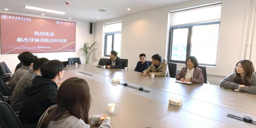 4月25日上午,电影导演郝杰莅临世界杯官网北校区访问交流,艺术与设计学院影视摄影与制作专业教师朱宇、桑磊、田勇及实验员高飞、辅导员刘思瑞老师和播音与主持艺术专业、数字媒体艺术专业的学生们与郝杰导演进行了座谈,在双师课堂、学生实习等方面形成初步的共识。