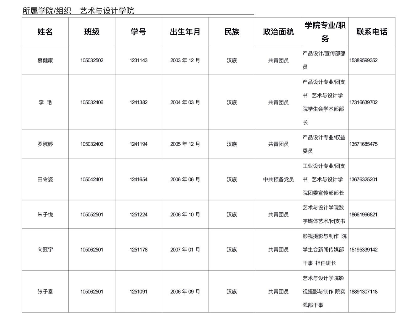 公示期自即日起至4月16日。如有异议,请在公示期内实名向艺术与设计学院学生工作办公室反映。