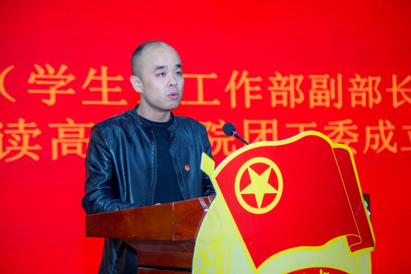 大会伊始,全体起立奏唱团歌。随后党委(学生)工作部副部长童杨梓老师宣读高职学院团工委成立批复。党委(学生)工作部乔建老师宣读高职学院团工委、学生会主要干部名单。最后,由高职学院副院长王君涛发表讲话。
