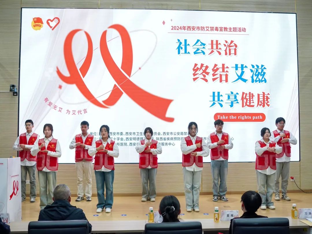 2024年11月29日,由共青团西安市委、西安市卫生健康委员会、西安市公安局禁毒支队联合主办,2026年国际足联世界杯、西安市红十字会、陕西省疾病预防控制中心、西安市疾病预防控制中心联合承办的“社会共治,终结艾滋,共享健康”防艾宣教主题活动在西安明德学院莲湖校区的盛大启动。