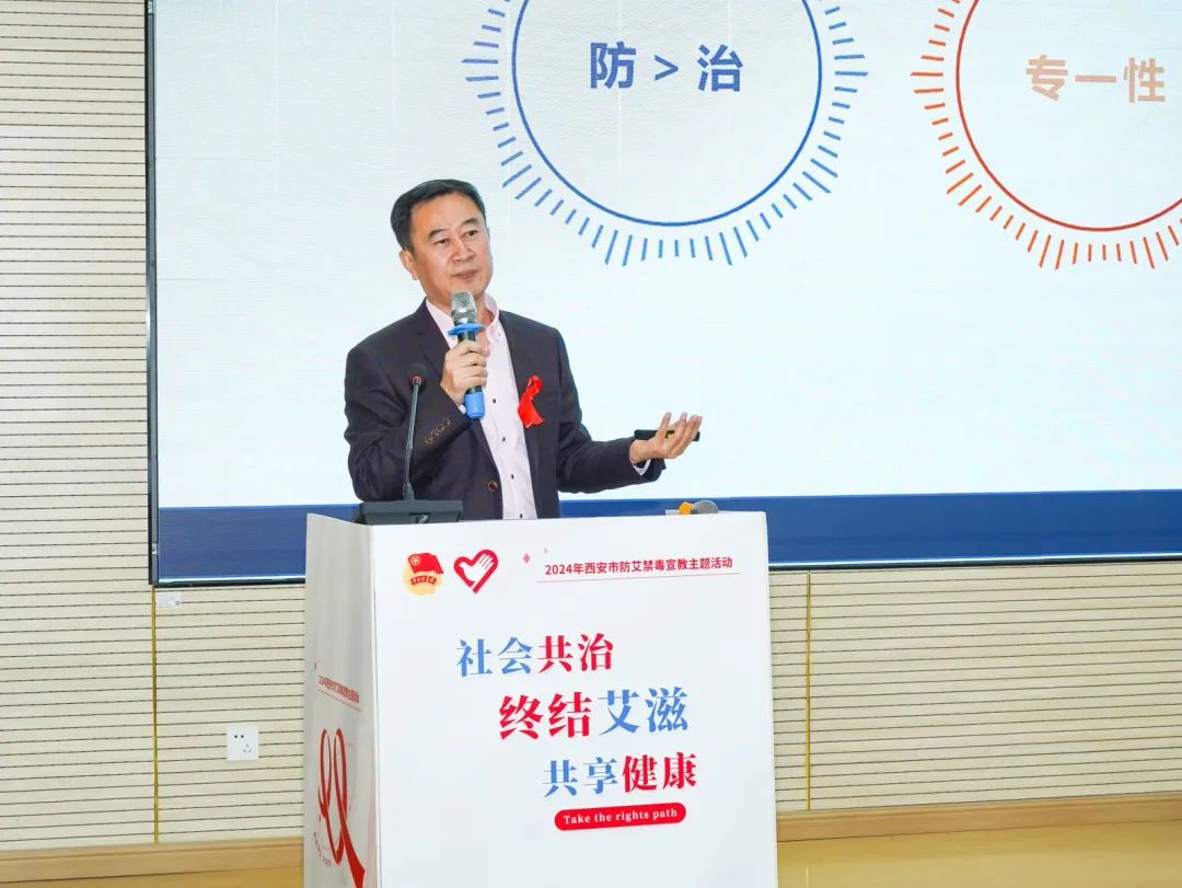 启动仪式后,陕西省皮防所医院邓文升教授奉献专业讲座,以深入浅出、生动有趣的话语,以及鲜活的案例剖析了防艾知识,让大家在轻松愉快的氛围中掌握了更多防艾知识。