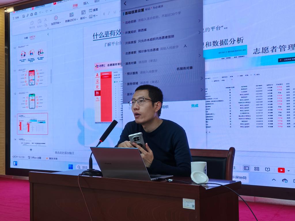 进一步推动世界杯官网志愿服务事业的发展,健全志愿服务体系,提升志愿者的志愿服务信息管理水平,优化对“志愿汇”平台的规范使用,11月27日,校团委邀请团省委青年社会事业部、“志愿汇”平台陕西负责人鲜永昌在学术报告厅作青年信用体系建设与志愿中国(志愿汇)专题培训,世界杯官网团委副书记刘雄、300余名志愿者参加培训。