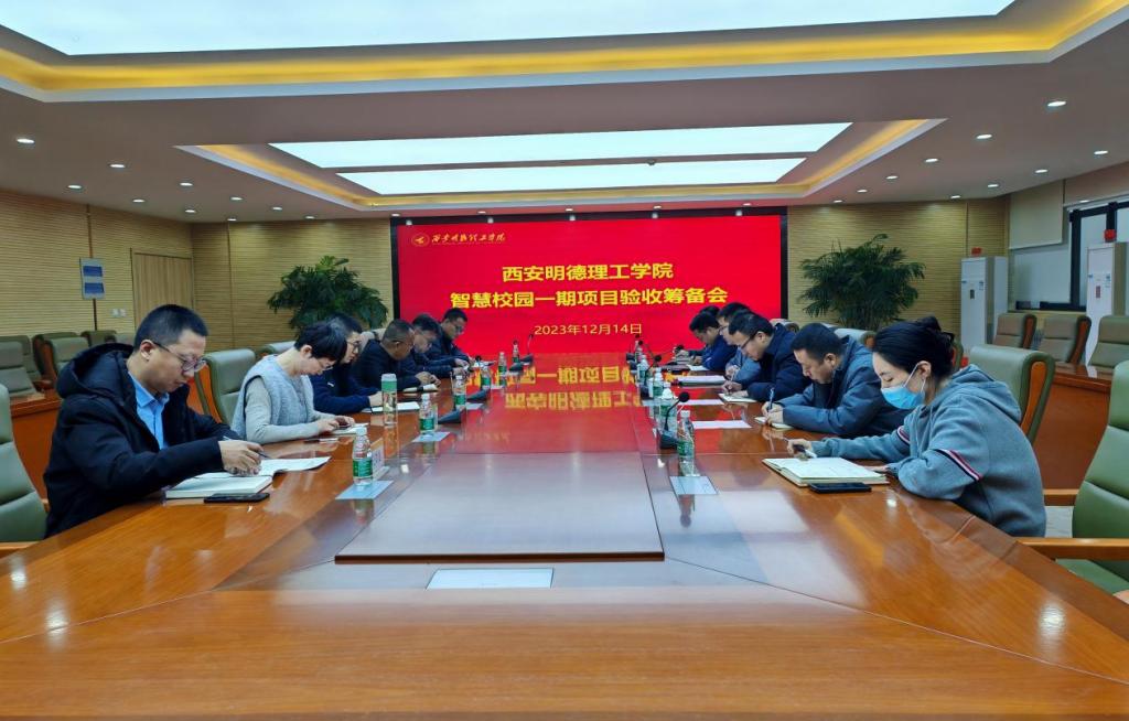 为加强对项目验收工作的组织领导,进一步明确责任,确保项目达到相关建设要求和标准,打造全面覆盖、高效便捷、安全可靠的智慧校园,12月14日上午,学校在明志楼南518会议室组织召开了智慧校园一期项目验收筹备会。集团信息化部总经理王晓波、学校财务总监马晓军以及智慧校园一期项目各业务单位负责人参加会议。会议由学校副校长、智慧校园项目总执行推进组组长刘星主持。