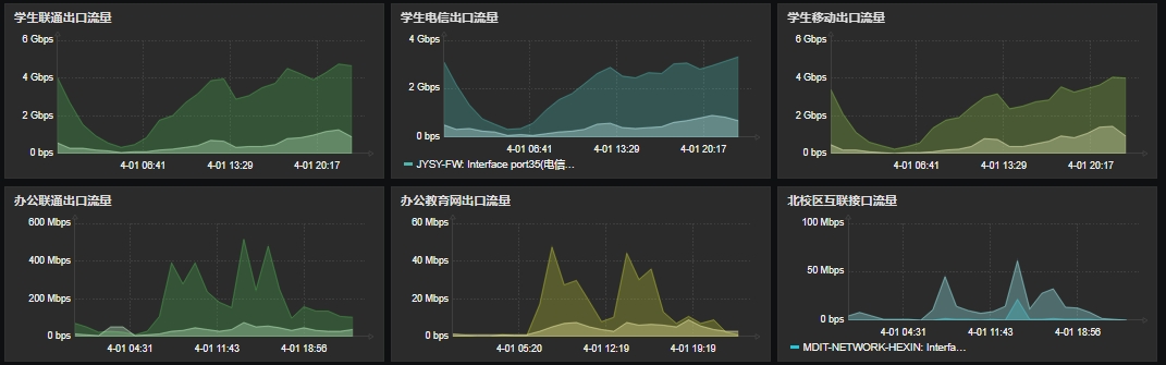 利用ZABBIX等网络监测平台,实时监测校内网络设备运行及流量状态,能够做到及时发现问题及时处理。