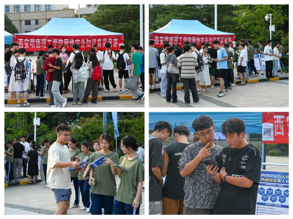 为加强网络安全知识学习,营造维护国家安全的浓厚法治氛围,增强防范和抵御安全风险的能力,9月11日下午,网络信息化中心在学校中心广场举办网络安全知识有奖竞答活动。通过扫码二维码线上答题的方式普及网络安全知识,题目涵盖网络攻击方式、密码安全、个人信息保护等多个主题。通过答题参与可获得定制精美礼品。通过竞答活动可以增强大学生安全使用网络的意识,加强网络安全知识学习,营造维护网络安全的浓厚法治氛围。活动吸引学校大量师生共同参与,大家纷纷表示通过本次活动了解到网络安全的重要性和紧迫性,也更加深刻地认识到自己在网络安全中的责任和角色。