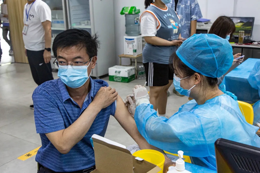 校领导们带头接种疫苗