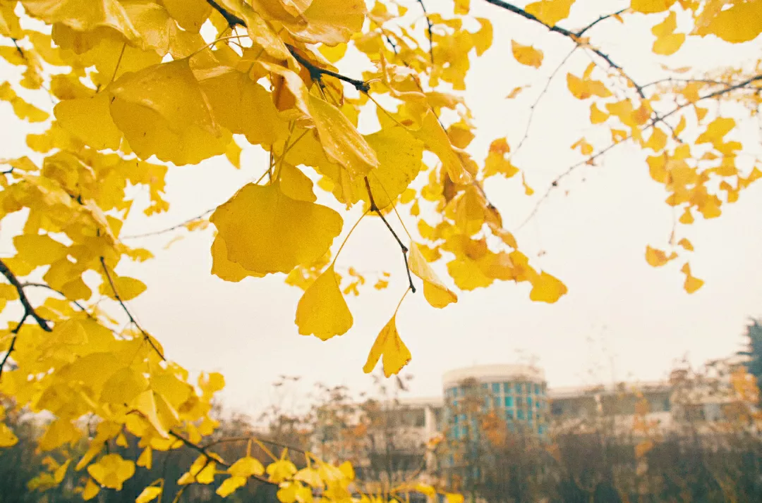 枯黄的银杏叶飘起又落下