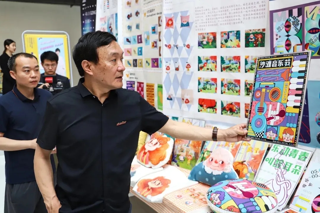 最后,学校领导和艺术与设计学院的各位老师共同参观了展厅内学生的毕业设计作品,并由设计者们为领导和老师进行详细讲解。参观过程中,校领导和老师们一致对同学们的作品表示了肯定,鼓励同学们在接下来的人生道路中继续努力,希望艺术与设计学院学生利用自身优势发挥更大的能力,创造更多的亮点和特色。