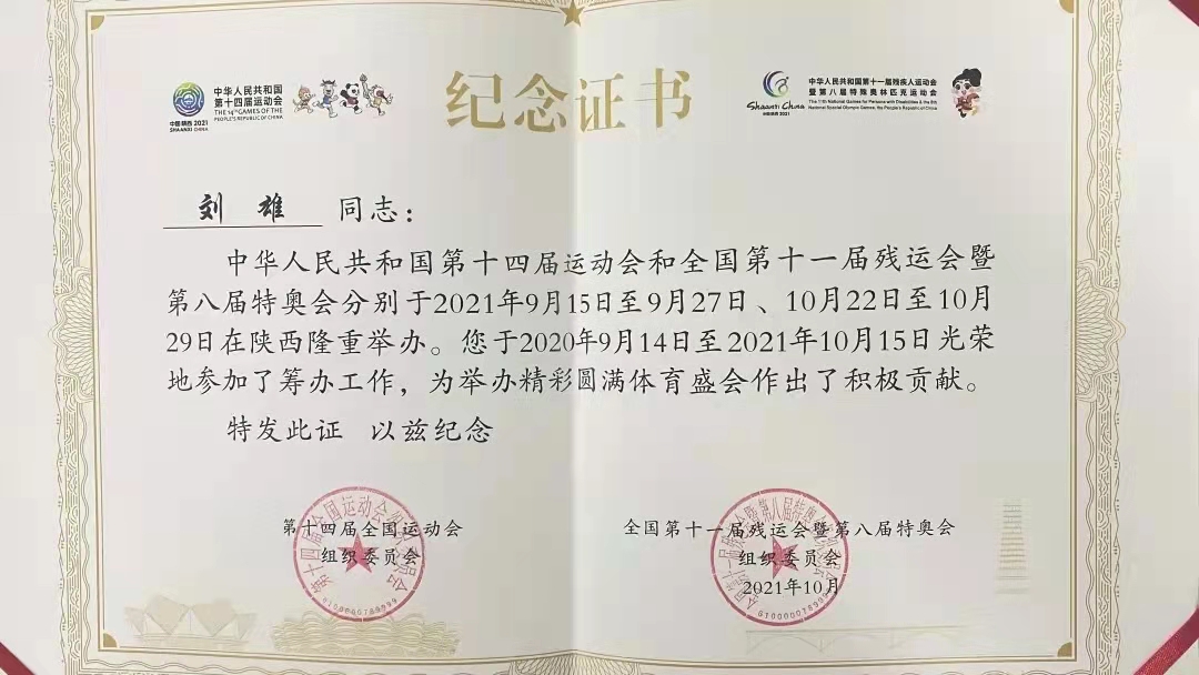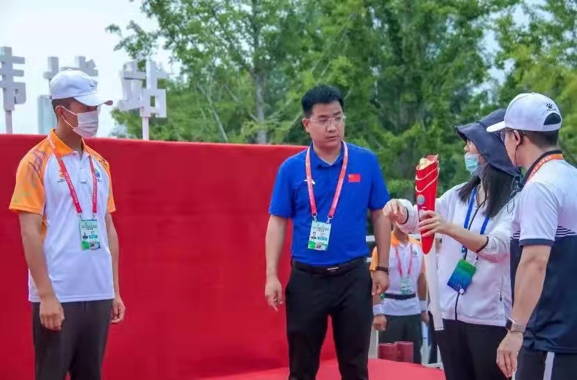 十四运会和残特奥会是建党百年重要历史节点上,国家举办的一次重大标志性活动,是新中国成立以来首次在我国中西部地区举办的规格最高、规模最大的全国性体育竞赛活动,而我能够亲眼见证这样的盛会,并能以火炬传递处副处长、先遣一组组长的身份亲身经历火炬传递工作,我感到非常幸运。尤其是习近平总书记出席十四运会开幕式并宣布开幕,看着来自革命老区延安宝塔山下的圣火,在奥体中心主火炬塔熊熊燃烧,令我深受鼓舞。